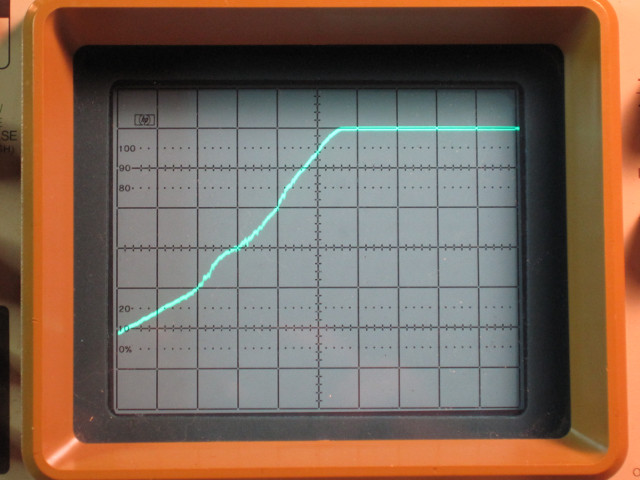 To determine how clean a fader was, I connected a DC power supply across the outer terminals, and probed the centre terminal with an analog storage oscilloscope.